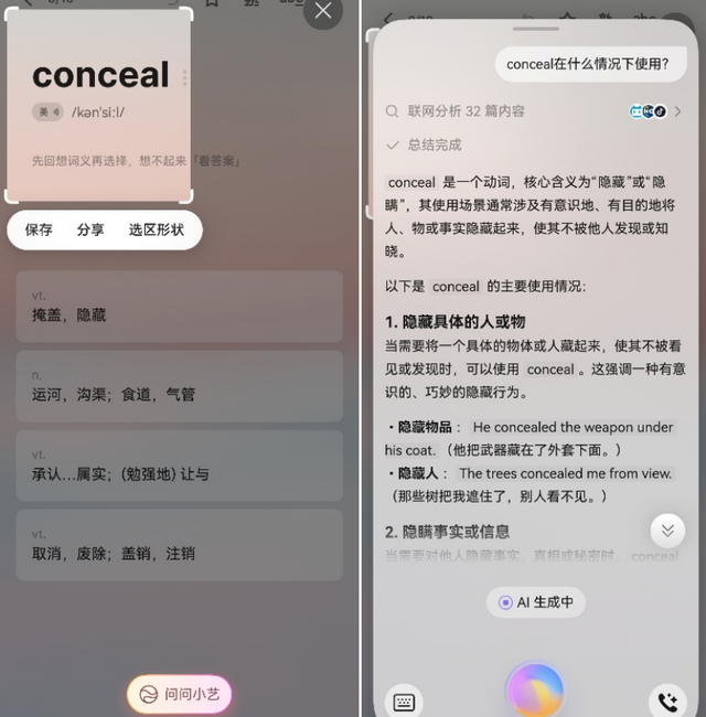 我第一次四级惨败的经历就不说了,都是泪。第二次能顺利飘过,全靠它。它最牛的地方在于,不是让你死记硬背,而是把词组搭配、派生词、词根给你串起来学,记忆效率直接翻倍。而升级鸿蒙后,它更是进化成了我的“学习超能力”。在背单词时,遇到一个绕口的派生词或者不理解的词根,根本不用跳出App去查。我直接用手指“圈一圈”,然后拖给小艺,小艺马上就会把所有相关的释义、用法全给你列出来。这个过程无缝衔接,学习的沉浸感完全不会被打断,效率高到飞起!