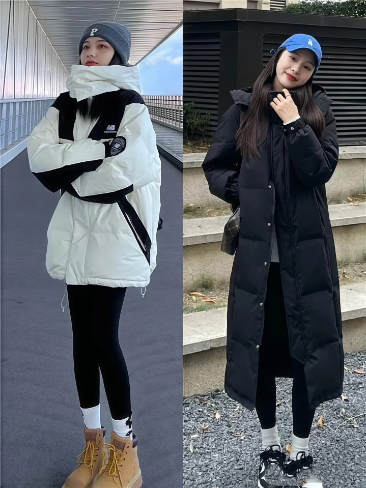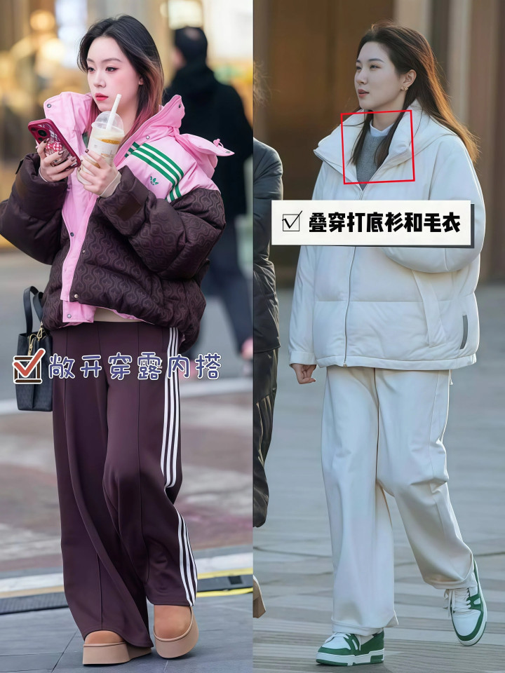★宽松羽绒服敞开穿,内搭选打底衫和毛衣