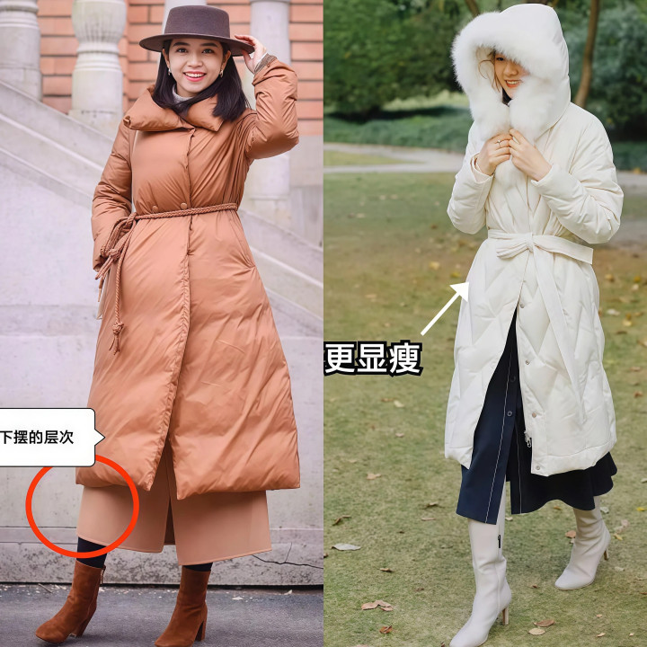 ★长款羽绒服选系带款,腰部收紧才显瘦