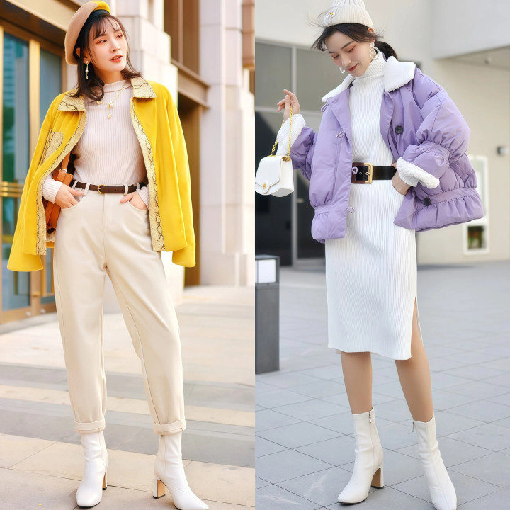 低饱和度、高明度的彩色系,总是如此吸引人,比如明黄色、香芋紫、藕粉色、雾霾蓝等等,都很适合跟白色相互辉映,一抹暖白色,便可以成功打破冬日的沉寂,衬托穿着者独一无二的魅力。