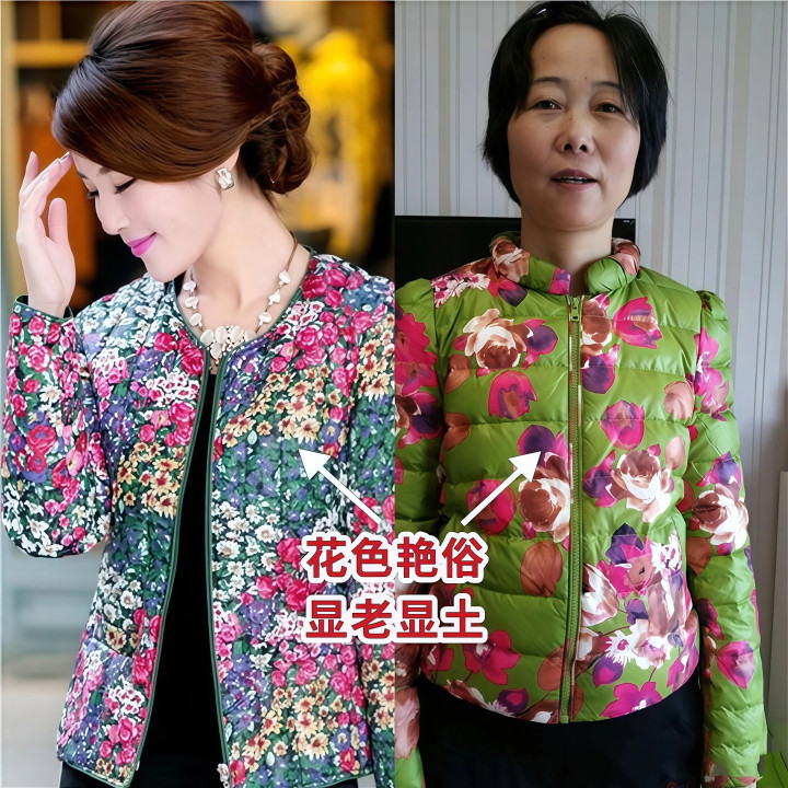 色彩是服装的灵魂,颜色选错了,瞬间就会暴露油腻感,很多中老年女人穿羽绒服,就总是喜欢花色艳俗的款式,穿上身显老又土气,真不如基础色来得高级,穿几次就容易审美疲劳。